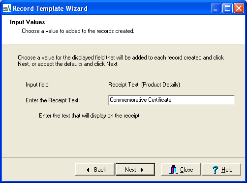 Product Typein the DetProductType field.Statusin the DetProductStatus field.- Asks for text to display on the Product receipt and sets the DetReceiptText field to the value entered.