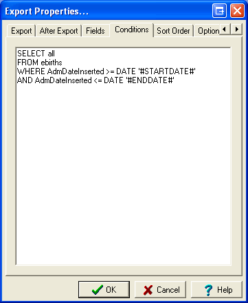 A births record creation project is under way. As part of the outputs of the project a weekly file is to be produced containing the Registration Number, Child's Given Names, Child's Surname, Date of Birth, Mother's Given Name, Mother's Surname of all records added in the week.