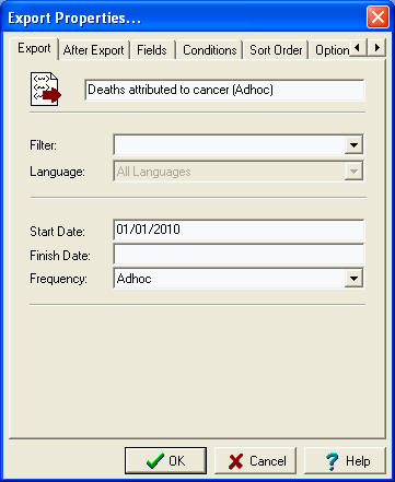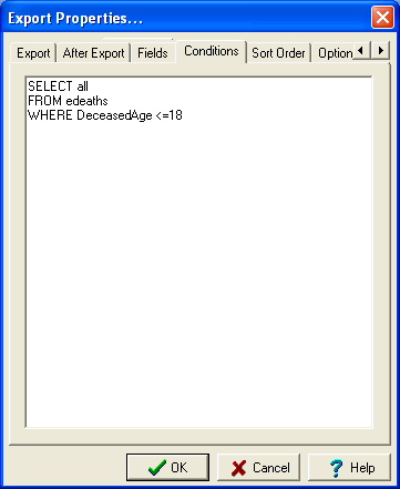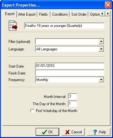 A quarterly export of all records of deaths where the deceased's age is 18 years or younger is required by the Health Department. The export must list the Registration Number, Deceased's Given Names, Surname, Date of Death and Date of Birth.