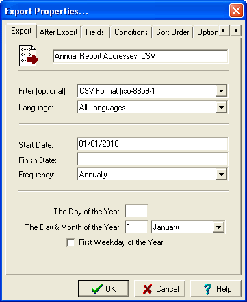 In order to send a copy of the change in the Marriage Act to all Marriage Celebrants, an export file containing mailing addresses is required. The report is only sent to Marriage Celebrants registered on 31 December in the given year. The export should produce a CSV file.