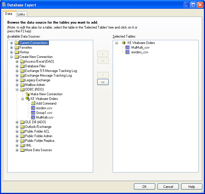 • As a rule, ensure that the Crystal report is not open in the Crystal Reports Designer when adding or deleting fields from the report in Vitalware: if a .csv file is created / removed as a result of changes made to the report in Vitalware, these changes will not be recognised by the Crystal report if it is open when the .csv files are generated.